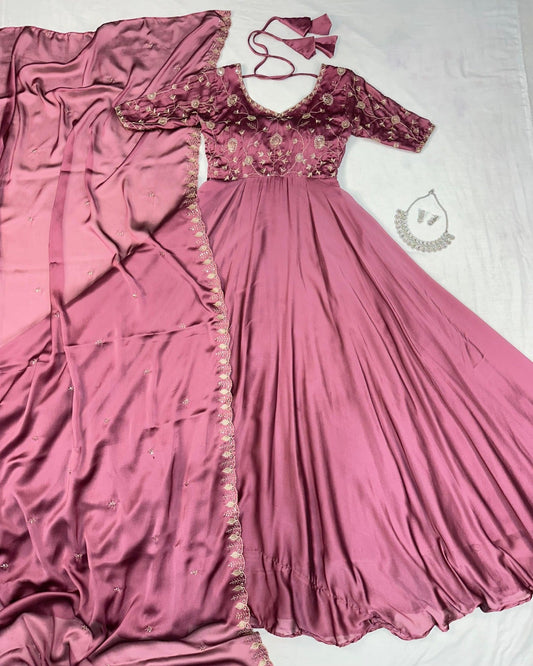 Roseberry Floral Embroidered Anarkali Set with sharara (Plazzo)