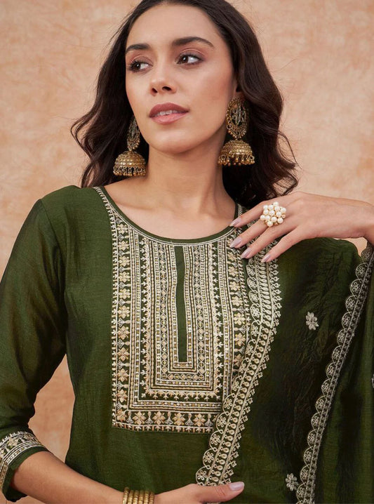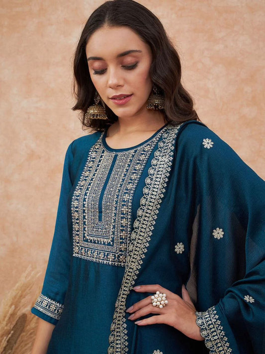 Emerald Floral Embroidered Silk Anarkali Set with sharara (Plazzo)