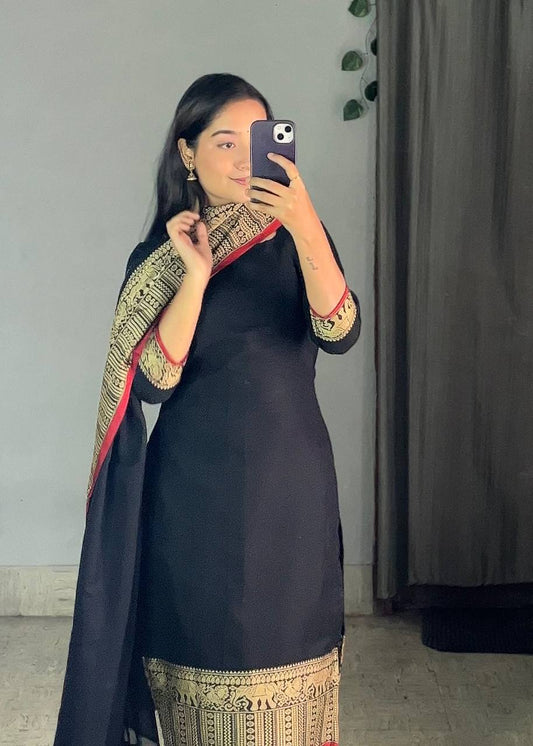Golden Blossom Embroidered Anarkali Set With sharara (Plazzo)