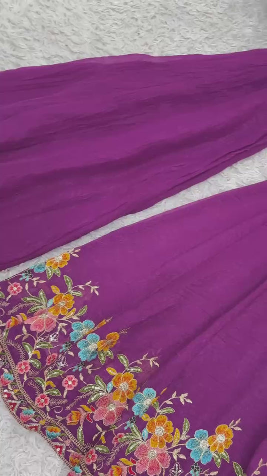 Roseberry Floral Embroidered Anarkali Set with sharara (Plazzo)
